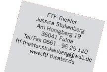 Unser Ensemble besteht aus pädagogisch geschulten Schauspieler/innen mit langjährigen Erfahrungen auf der Bühne, in der Leitung von Gruppen und in den Bereichen Fortbildung und Beratung. Sollten Sie sich für ein Engagement, eine Fortbildung o.ä. entscheiden, setzen Sie sich bitte zwecks Terminabsprachen sowie weiterer Vereinbarungen mit dem Büro des FTF - Theaters in Verbindung. Unseren Angeboten gehen ausführliche Zielvereinbarungsgespräche zwischen SpielleiterIn bzw. SchauspielerIn und AuftraggeberIn voraus.